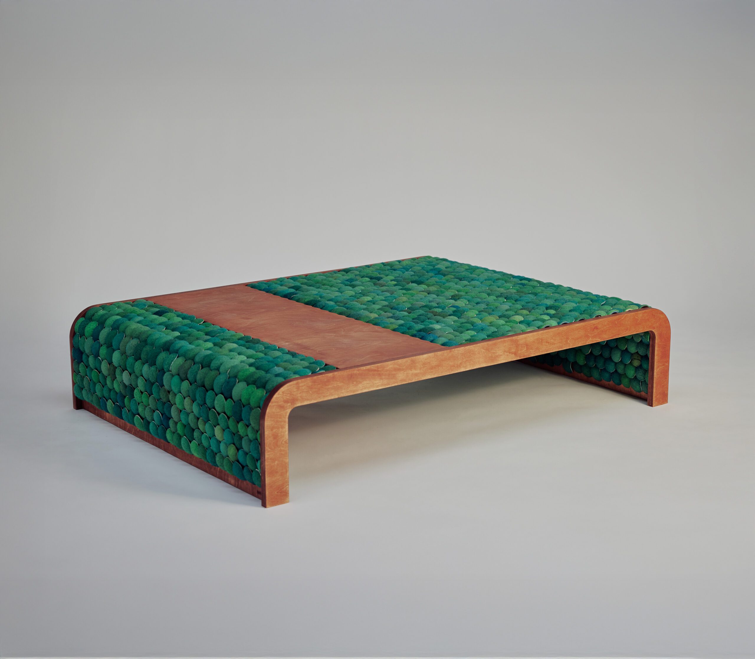 Bounce Table Limited Edition Handcrafted and custom-made Bounce Coffee Table panel made from 683 tennis balls, contributing to an estimated 23.2 kg of CO₂ emissions removed from the atmosphere. Dimensions: 1m10 x 1m50 x 32 cm Colours: Jungle blue Wood : Oak birch ask quote →