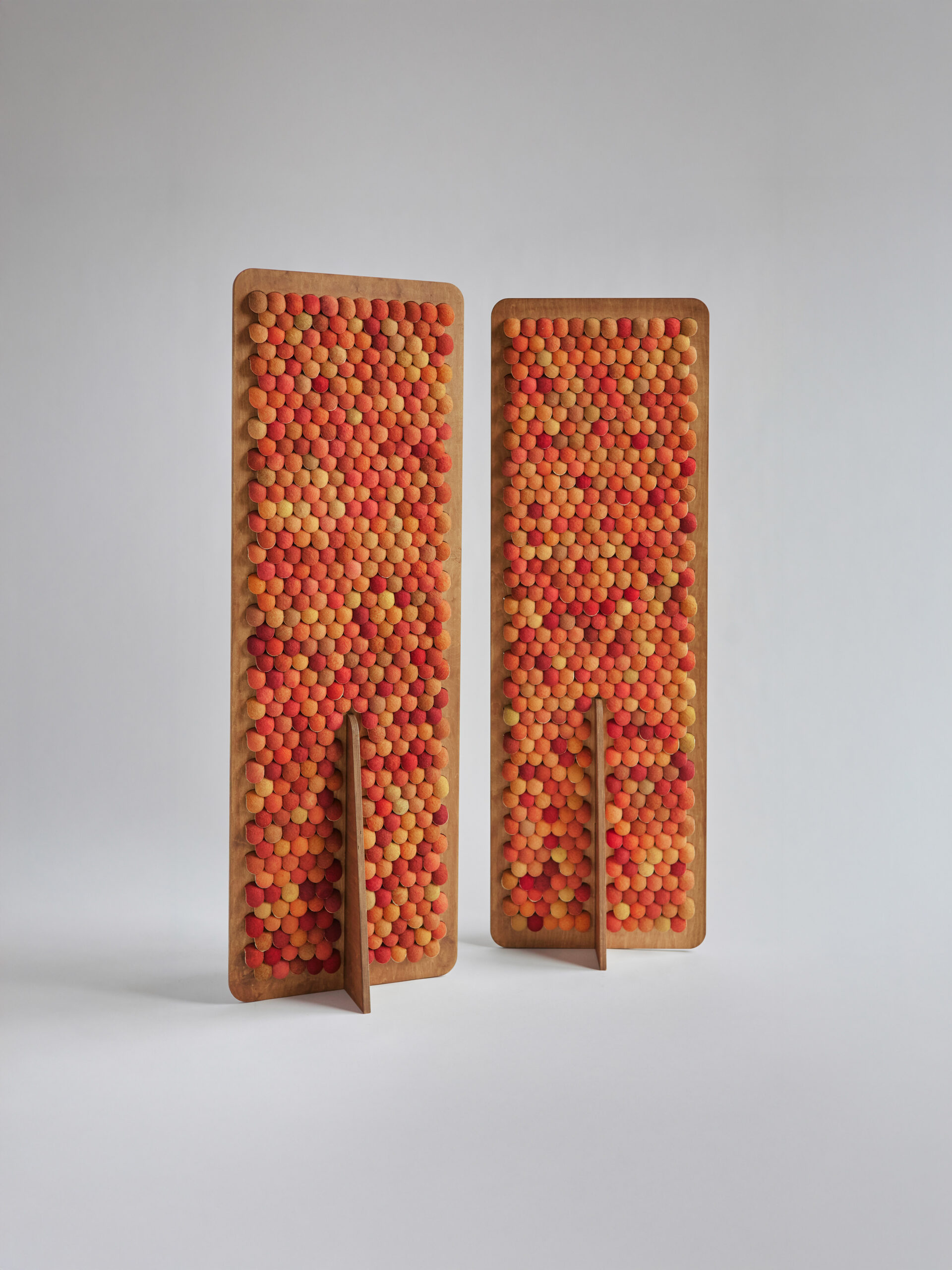 The Bounce Divider upcycles a total of 253 tennis balls, removing an estimated 7.6 kg of CO₂ from the air. Its side-by-side design allows for modular configurations.