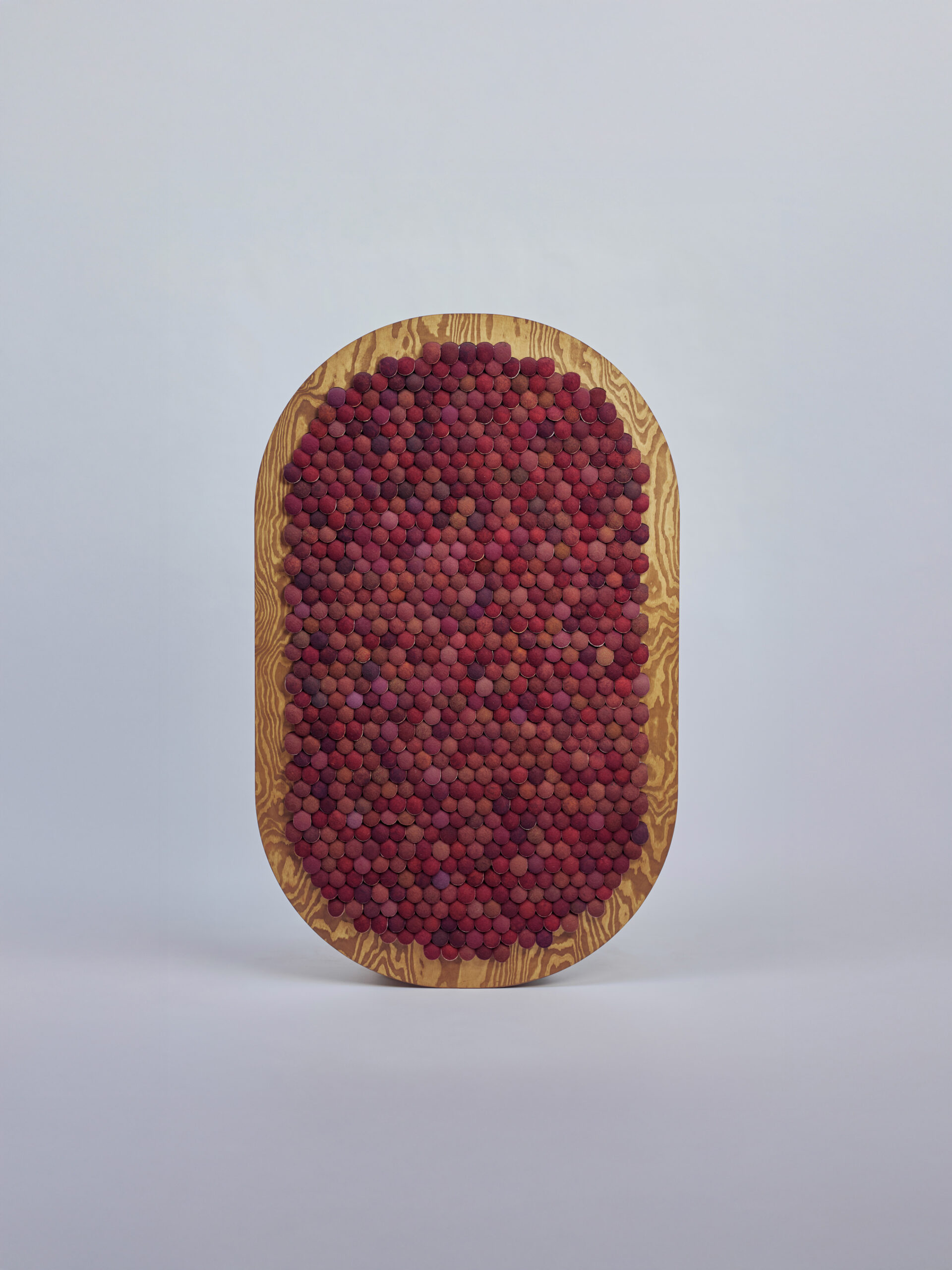 Handcrafted acoustic wall panel, made from around 750 repurposed tennis & paddle balls, contributing to an estimated 25 kg of CO2 emissions removed from the atmosphere.